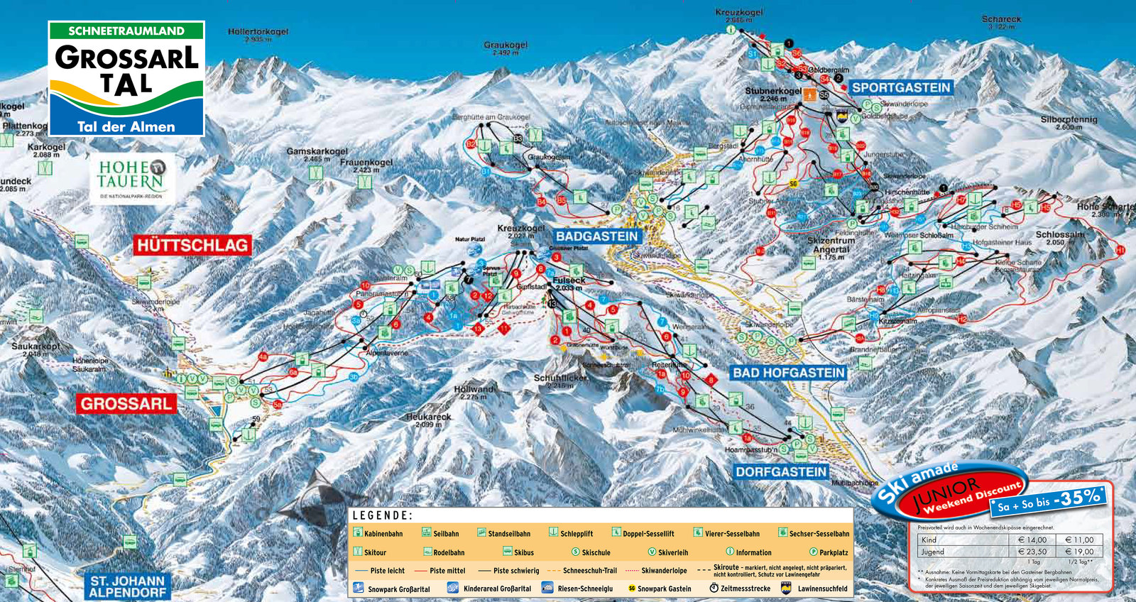 | Ski Amadé - ceník skipasů | Hlavní sezóna | Vedlejší sezóna | ||||