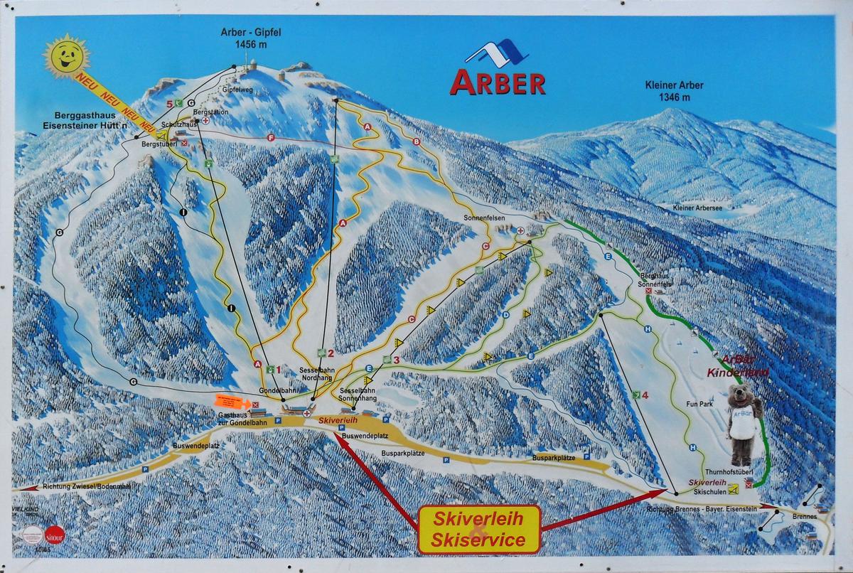 Lyžování v oblasti Grosser Arber je vskutku parádní. Jedničkou je zde svižná FIS trať, splňující mezinárodní parametry pro závody ve slalomu a obřím slalomu Světového poháru, kterou obsluhuje moderní kabinková lanovka. Až na Arber, odkud je krásný výhled do okolí, vás z její konečné vytáhne kotva. FIS trať obloukem obíhá červená sjezdovka "Standard", kam se dostanete jak z kabinky, tak i z šestimístné sedačky. Její profil je pozvolnější a tudíž proto také přitahuje víc lyžařů. Z druhé strany vede dolů lesem ještě jedna sjezdovka, která je označená černou barvou. Nejlehčí sjezdovou tratí je pak pohodový červený svah "Sonnenhang", kde se koná navíc i noční lyžování, a také stranou ležící "modrá louka" Thurnhof s vlekem - opravdu velký ráj pro děti. Nachází se zde například i přepravní pásy o délkách třicet, sedmdesát a sto metrů. Lyžovat můžete na téměř jedenácti kilometrech tratí, k dispozici jsou moderní šestikabinková lanovka a dvě šestisedačkové lanovky. Ve středisku také freeskieři najdou svou mini freeridovou zónu. Ta však zůstává zcela bez úpravy. Vyzkoušet si můžete i sáňkařskou dráhu, která začíná u výstupu z šestisedačkové lanovky Sonnenhang, odkud se pak jede po 1 200 metrů dlouhé dráze. Nutno říci, že lyžařské středisko Grosser Arber je velice příjemné místo pro lyžování. Češi dnes tvoří asi třetinu lyžařů, a tak není divu, že i ve zdejších restauracích se s obsluhou domluví česky a dokonce i informace u lanovek jsou v obou jazycích. Díky "kouzelnému koberci" tu najdou skvělé podmínky pro své první pokusy na lyžích i naši nejmenší a to přímo v "ArBär Kinderlandu". Kdo hledá více pestrosti, měl by zcela jistě navštívit lyžařský areál "Großer Arber", kam se dostane pohodlně skibusem. K dispozici vám zde je 11 km sjezdovek všech stupňů obtížnosti, z nichž je jedna dokonce závodní! Také díky pozoruhodným investicím, co se týče lanovek, vleků a sněžných děl, bylo středisko rozsáhle modernizováno a nyní nabízí vysokou jistotu sněhu a to většinou až do jara. Také snowboardisté si přijdou na své ve funparku s boxy, raily, skokánky a různými jinými atrakcemi.