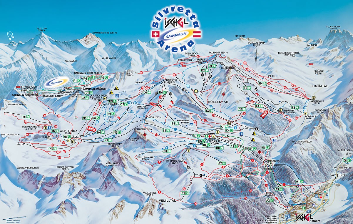 Vzhledem ke své poloze, poskytovaným službám, ale i architektuře, se samotné lyžařské středisko Ischgl řadí k těm nejluxusnějším v Rakousku. Navíc je umístěno v největší lyžařské oblasti ve východní části Alp, která spojuje dva ráje zimních sportů - Samnaun na švýcarské straně a Ischgl na straně rakouské. Před 100 lety zde stál pouze kostelík se dvěma skromnými usedlostmi, dnes je to kosmopolitní moderní středisko, které si ponechává původní punc zemědělské obce. Do centra Ischglu lze z hřebenů sjet po 4 sjezdových tratích. V Ischglu se nachází také speciální snowpark "Snow Show", který mohou využívat jak začínající, tak i pokročilí snowboardisti. V lyžařské oblasti Ischgl - Saumnaul najdete vše, co si jen můžete představit - od náročných tratí, náročných jízd na boulích, cvičných luk, tratí pro milovníky carvingu, až po náročný svah Pardatschgrad, s neuvěřitelným převýšením 1 200 m při délce 1,6 km. V roce 2011 zde také byla uvedena do provozu 6-ti místná sedačka Lange Wandbahn. V části Idalp se pak nachází celá řada specializovaných zařízení pro snowboarding, milovníci lyžování v hlubokém sněhu budou spokojeni zejména v části Höllenkar. V celé oblasti Silvretta Arena se tak lyžaři mohou těšit na 238 kilometrů výborně upravených sjezdových tratí, které se nacházejí v nadmořské výšce od 1 377 do 2 872 metrů. Nejen jeho úctyhodná nadmořská výška, ale i výkonný systém zasněžování zde zabezpečuje dostatek kvalitního sněhu. Tepajícím srdcem celé oblasti Silvretta Arena je zcela jistě větší a rušnější Ischgl, jehož centrem je Idalp - křižovatka řady vleků a tratí. Zdejší chloubou je pak sjezdovka jménem Eleven (11 km), vinoucí se z vrcholu Greitspitz (2 872 metrů). Ta nabízí převýšení 1 472 metrů. Lyžařské oblasti Ischgl, Paznauntal a Samnaun jsou propojeny jedním společným skipasem, který lyžařům umožní bez problému poznat krásy celého regionu. Devadesát procent střediska leží v nadmořské výšce mezi 2 000 - 2 800 m a proto tento fakt garantuje neskutečné sněhové podmínky na sjezdovkách od konce listopadu do začátku května.