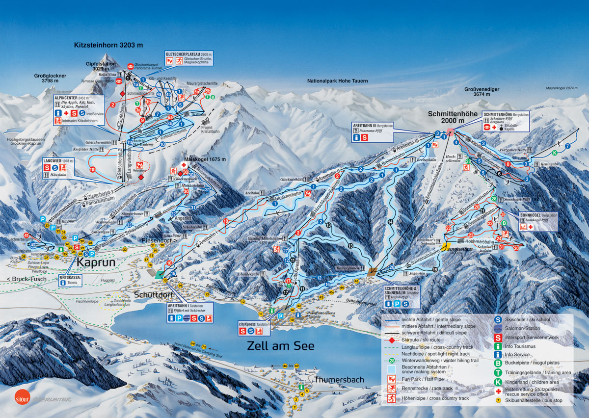 V lyžařském resortu Kitzsteinhorn se lyžaři mohou těšit celkem na 41 km sjezdových tratí, které se rozprostírají v nadmořské výšce od 1 976 m do 3 029 metrů. Velké možnosti skýtá také areál vyznavačům freeridu. Lyžaře dokáže přepravit celkem 20 vleků, ve středisku můžete počítat i se snowparkem a lyžařskou školou. Se skipasem "Zell am See - Kaprun" získáte navíc přístup ke 138 km sjezdovek a 50 moderním lanovkám a vlekům v lyžařských střediscích Maiskogel a Schmittenhöhe, stejně jako v ledovcovém středisku, které dosahuje výšky 3 029 m. Díky lanovkám Schmittenhöhe, CityXpress a TrassXpress se do lyžařského střediska dostanete během několika minut. Lyžařské středisko Maiskogel nabízí velký počet širokých, modrých sjezdovek a je jak dělané pro rodiny s dětmi. U vleku Maiskogelköpfel také naleznete sedmikilometrovou a zároveň nejdelší sjezdovku lyžařského regionu. Kitzsteinhorn (3 203 m) zaručuje absolutní jistotu sněhu a lákat vás bude na jeho středně těžké sjezdy. Pokročilé a zkušené lyžaře to však přece jen spíše táhne do k Schmittenhöhe (2 000 m), jejíž sjezdovka "Trassabfahrt" o celkové délce 4 km patří k těm nejtěžším v celém středisku. Freerideři zase budou milovat volnou pláň pod lanovkou Sonnkogel a pro snowboardisty si každé ze středisek připravilo vlastní snowpark s tables, slides a jumps! Se skipasem "Salzburg Super Ski Card" budete mít dokonce přístup k 2 200 km sjezdovek v 23 lyžařských střediscích, jako jsou například Saalbach - Hinterglemm - Leogang, Kitzbühel nebo Salzburger Sportwelt.