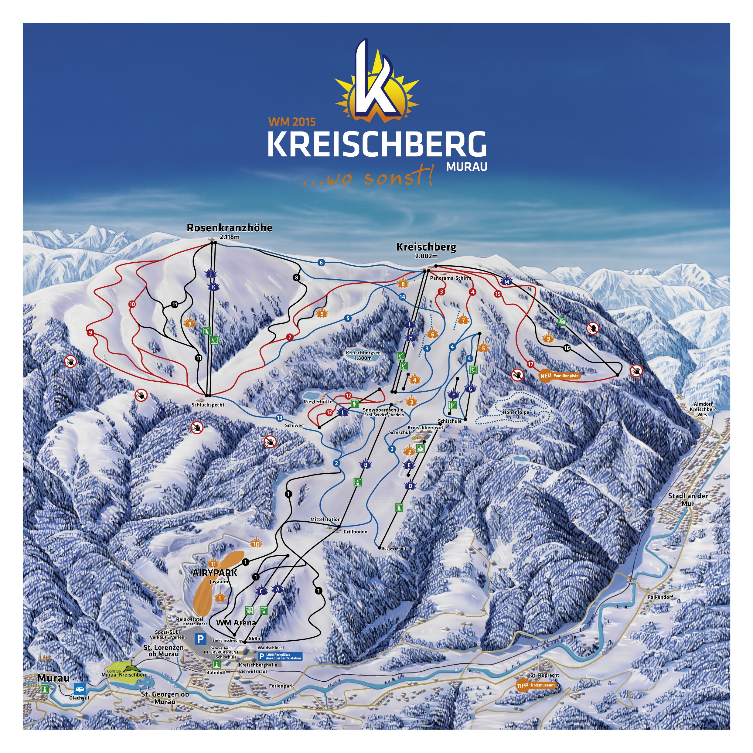 Nejen svým lyžařům a snowboardistům poskytuje lyžařský areál Kreischberg celkem 41 kilometrů perfektně upravených sjezdovek, ale také i širokou paletu kurzů, zábavní park a dokonce i vybavení, jako jsou například půjčovny lyží a lyžařského servisu. Právě v tomto středisku najdou všichni zimní sportovní fanoušci všech věkových kategorií to, co hledají. A to především zábavu na sjezdovkách v lyžařském středisku Kreischberg. Ve výškách od 868 metrů do 2 118 metrů nad mořem objevíte velké množství sjezdovek jak pro malé, tak i velké lyžaře, stejně jako rychlé sjezdy a dobrodružství, které zaručují úplné sněhové radovánky. A co víc si přát pro perfektní lyžařský den? V resortu Kreischberg můžete také počítat i se snowparkem, svahem s měřením rychlosti a lyžařskou školou. Vyznavači klasického lyžování si také přijdou na své, neboť v okolí se nachází 2,5 kilometrový běžkařský okruh.