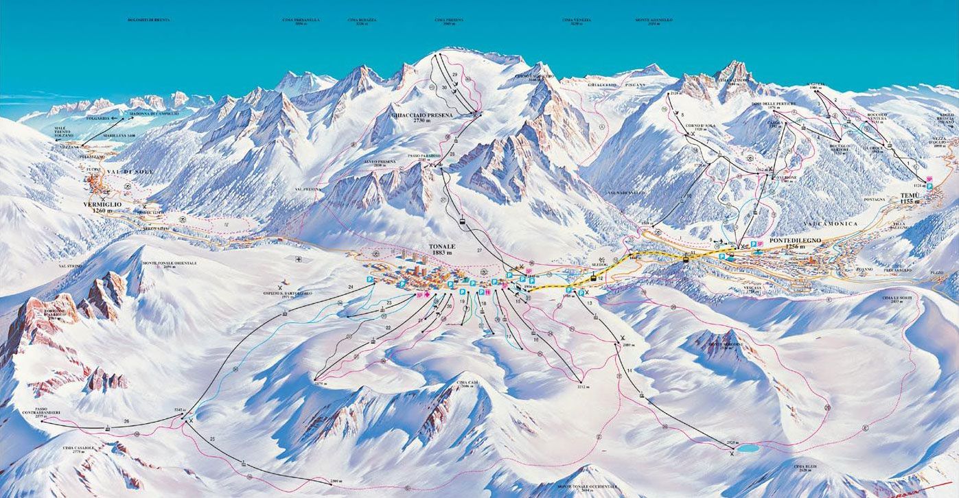 Passo Tonale je lyžařské středisko, které leží v horském sedle ve výšce 1 882 m. Díky ledovci Presena zde tak můžete lyžovat až do výšky 3 000 m (celoroční lyžování). Středisko je propojeno bezplatným skibusem (8 km) s nedalekým malebným městečkem Ponte di Legno, ležícím ve výšce 1 257 m. Střediska dohromady tvoří úctyhodný ubytovací komplex hotelů a rezidencí, ležících v těsné blízkosti sjezdovek a vleků. Ski areál disponuje lyžařskými terény všech obtížností, své perfektně upravené sjezdovky si zde určitě najdou jak zkušení a výborní lyžaři, tak i úplní začátečníci. Všechny svahy jsou situovány na sever, nejen proto si zdejší areál také vybralo pro trénování lyžařské národní mužstvo. Při troše štěstí a opravdu dostatku sněhu se také dá sjet na lyžích i z Tonale do Ponte di Legno. Passo Tonale je rozděleno na levou a pravou lyžařskou část, přičemž zážitkem pro milovníky rychlého lyžování je sjezd tratě Paradiso (2,7 km s převýšením více než 700 m). Středisko využivá jednoho skipasu (Superskirama Dolomiti nebo Adamello Ski), které platí i pro okolní střediska Madonna di Campiglio, Folgarida - Marilleva, Paganella a daší.