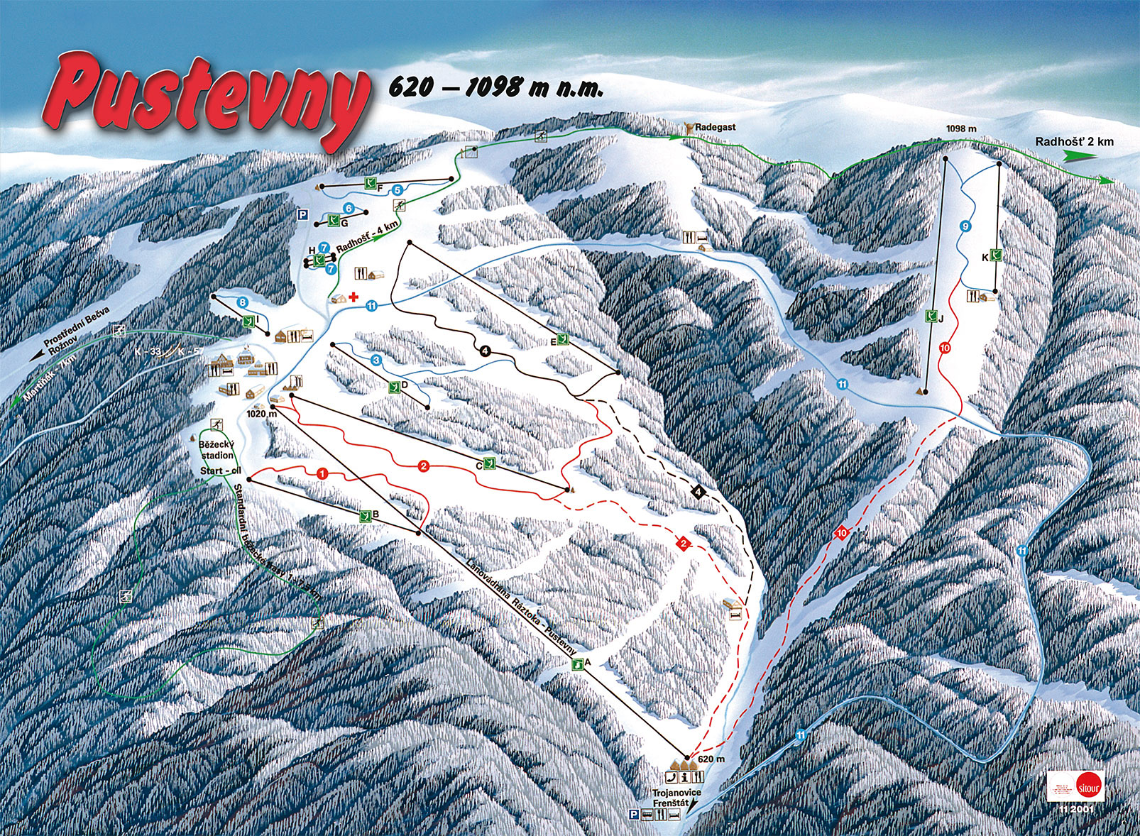 Lyžařské středisko Ski Alpin se nachází v Beskydech, v oblasti Radhošťské pahorkatiny, v údolí pod vrcholem Radhoště. Pohodlnou jízdu na Pustevny, se zajímavým pohledem na krajinu z ptačí perspektivy, nabízí sedačková lanovka, jejíž nástupní stanice se nachází poblíž hotelu Ráztoka v Trojanovicích (v nadmořské výšce 620 m). Odjezdy denně: 8.00, 9.00, 10.00, 11.00, 12.00, 13.00, 14.00, 15.00, 16.00, 17.00 a 18.00 hod. Lyžařské středisko Pustevny, jehož svahy jsou orientovány na severovýchod a severozápad, má připraveny jak velmi náročné terény pro zkušené lyžaře, tak i mírné terény vhodné pro děti a začátečníky. Na Pustevnách je celkem 6 sjezdových tratí, pro začínající sjezdaře doporučujeme sjezdovku Pod Šumnou, která se nachází v blízkosti lanové dráhy na Pustevnách. Zkušenější lyžaři pak mohou navštívit Velkou sjezdovku, která se svými parametry uspokojí široké spektrum lyžařů. Náročnější lyžaři pak mohou využít sjezdových tratí Lokomotiva, Malá sjezdovka a Pod Kolibou. Pro děti je k dispozici i lanový vlek. Sjezdové tratě jsou samozřejmě pravidelně upravovány. Středisko je kromě dvousedačkové lanové dráhy vybaveno vleky a systémem technického zasněžování. Taktéž můžete využít služeb půjčovny lyží (půjčovna při lyžařské škole Ski School Pustevny a půjčovna lyží a běžek v turistické chatě Šumná), dětských skútrů, ski servisu, ale i například lyžařské školy (Ski School Pustevny, Ski Team Pustevny a Lyžařská škola při chatě Šumná). Pro vyznavače snowboardingu je připraven i nově vybudovaný Snowpark. Areál je navíc vybaven dostatečným množstvím ubytovacích, stravovacích a doprovodných služeb, přímo u horní stanice sedačky je i několik chat, kde se můžete občerstvit. Lyžařské středisko disponuje i pásovým skibusem, který je v provozu mezi Velkou sjezdovkou a Pustevnami. Jeho odjezdy z Velké sjezdovky: 11:50, 12:50, 13:50, 14:50 a 15:50 hod. LANOVÁ DRÁHA NAVAZUJE NA PŘÍJEZD SKIBUSU! Zajištěna je i přeprava vláčkem z parkoviště k dolní stanici lanové dráhy. Ve středisku také lze využít i lístky pro seniory, tedy pro lyžaře, kteří mají nejméně 65 let. Ti pak za skipas zaplatí stejně jako děti.