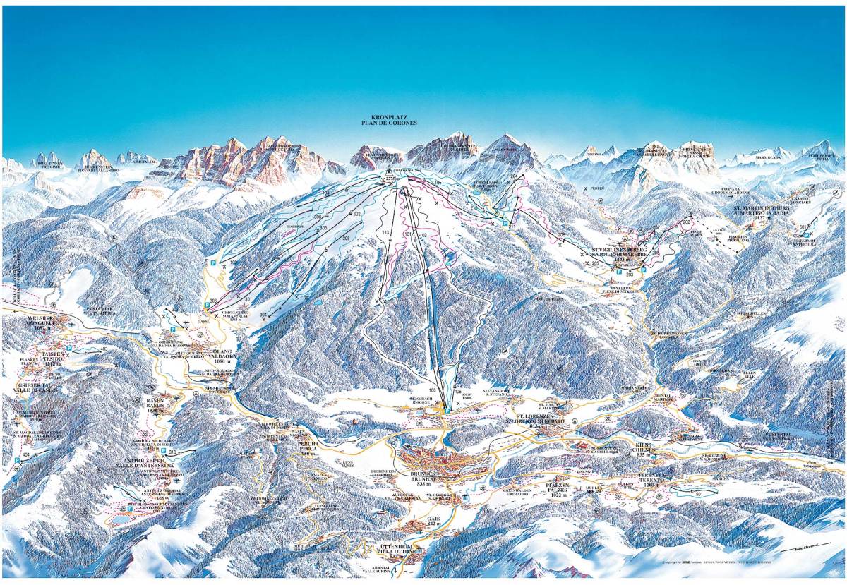 Moderní lyžařské vleky, které začínají přímo na okraji městečka, dobře upravené sjezdovky a nádherný výhled dělají společně z Reischachu (956 m n.m.) jednu z nejkrásnějších destinací v Dolomitech. Reischach / Riscone se nachází u Kronplatzu, který patří mezi nejmodernější lyžařské areály v Evropě. Lyžařská oblast Kronplatz, která je pro lyžaře přístupná ze tří stran, odpovídá těm nejnovějším standardům a dostanete se k ní snadno a bez jakýchkoliv potíží. Lyžařský areál má hned několik all-inclusiv balíčků a opravdu budete mít z čeho vybírat. S rozšířením skipasu na „Dolomiti Superski“ máte možnost vychutnat si až 1 200 km sjezdů, 448 vleků a lanovek a 12 různých lyžařských středisek. Oblast je součástí jednotného skipasu Skirama Kronplatz a Dolomity Superski.