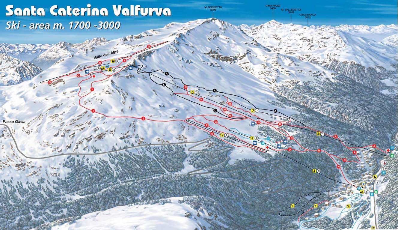 V sousedství známého resortu Bormio (s nímž v roce 2005 spolupořádalo mistrovství světa v alpském lyžování) se nachází severoitalské středisko zimních sportů - Santa Caterina. Milovníci lyžování se zde mohou těšit na 14 sjezdovek v celkové délce 35 kilometrů, které se rozprostírají v nadmořské výšce od 1 738 metrů do 2 800 metrů, které jsou v případě nedostatku přírodního sněhu velmi dobře zasněžovány. Vynikající sjezd si můžete užít zejména na černo-červené sjezdovce, která vede z horského hřebenu Mount Sobretta až do údolí. Na této sjezdovce se jely závody již zmiňovaného mistrovství světa v alpském lyžování. Ačkoliv se tento ski areál řadí mezi ty menší, přesto nabízí kvalitní přepravní zařízení a převážně červené, perfektně připravené sjezdovky. Díky skipasu "4 Valli", který propojuje Mormiu, San Colombanu, Valdidentru a Santa Caterinu, si můžete vyzkoušet i další sjezdovky v okolí. Dohromady tedy budete mít k dispozici 230 km perfektně upravených sjezdovek a 70 přepravních zařízení.