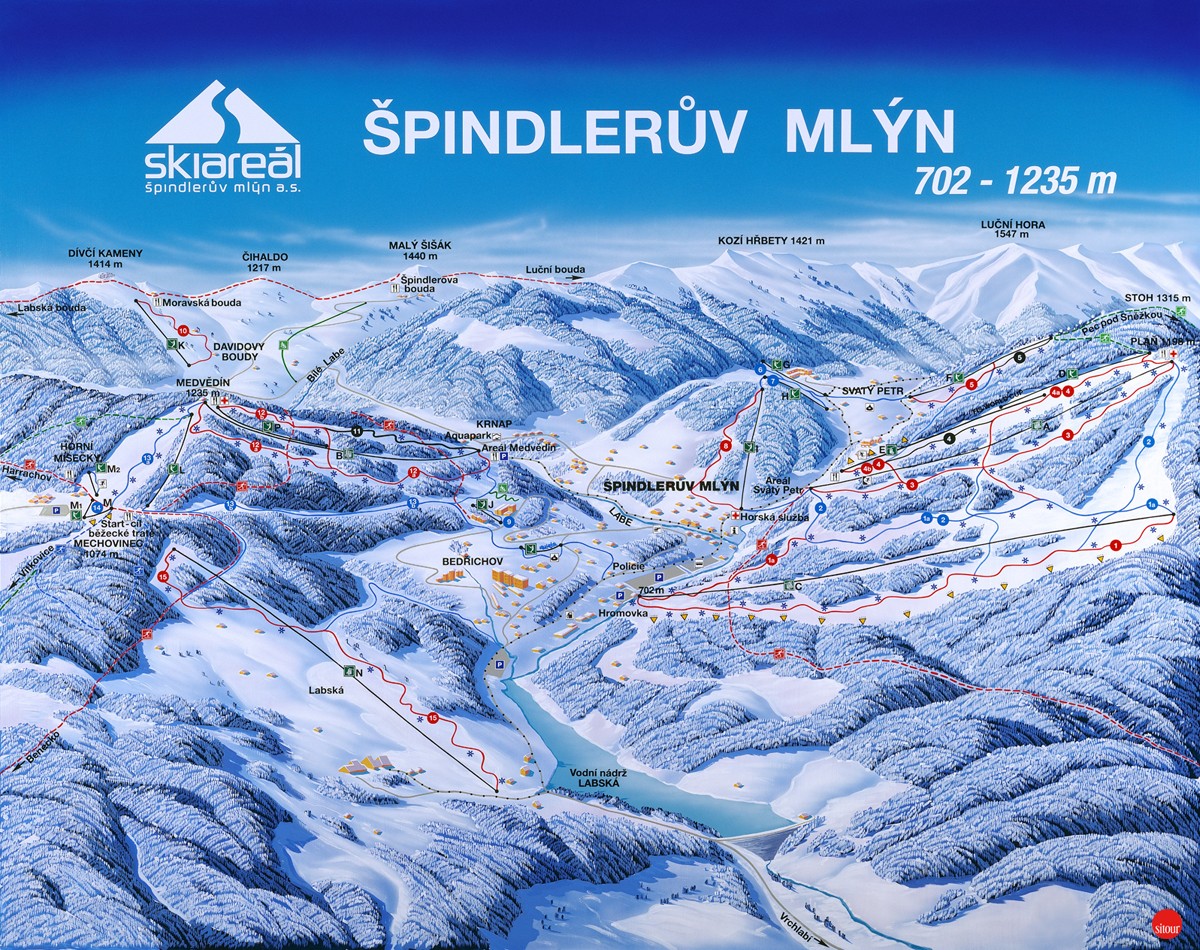 Hlavními lyžařskými areály střediska Špindlerův mlýn jsou areál Medvědín - Horní Mísečky, nacházejí se v severozápadní části obce a areál Svatý Petr, v jihovýchodní části obce. V obou areálech je zajištěno umělé zasněžování sjezdových tratí a k dispozici je i nabídka nočního lyžování. Na Medvědíně je však omezeno jen na úterý a čtvrtek. Pro snowboardisty připravil lyžařský areál U-rampu, nechybí zde ani 4 km dlouhá osvětlená sáňkařská dráha, lyžařské školy, snowboardová škola, ski servis a nebo i půjčovny lyžařského vybavení. Samotný ski areál Špindlerův Mlýn provozuje 4 lanové dráhy a 11 lyžařských vleků ve Špindlerově Mlýně a na Horních Mísečkách a nabízí celkem 25 km sjezdových tratí. V případě nepříznivých sněhových podmínek je možno i 85 % z nich technicky vysněžit. Nejvýznamnějším centrem sportovního dění ve Špindlerově Mlýně je areál Svatý Petr, který se každým rokem stává dějištěm mnoha významných sportovních akcí. Počínaje závody Světového poháru a konče závody Evropský poháru. Přímo v areálu jsou v zimní sezóně v provozu 3 lanové dráhy a pět vleků a zdejší sjezdové tratě jsou co do délky převýšení i úprav nejkvalitnější v rámci celé ČR. Bohatě je také navštěvovaný zdejší snowpark, včetně U rampy. V rámci celého Špindlerova Mlýna (4 lanové dráhy a 11 vleků) platí jednotné jízdné. S lyžařským areálem Medvědín je Svatý Petr propojen pravidelnou linkou Ski busu. Stále více vyhledávaným místem lyžařů, kteří mají rádi pohodové lyžování na slunci, se stává lyžařský areál Medvědín, který je lanovou spojen s areálem Horní Mísečky. Nachází se zde velmi dobrá černá a červená sjezdová trať, ta je určená především pro sportovní lyžařskou jízdu. Areál Horní Mísečky je vhodný pro začátečníky a rodinnou dovolenou s dětmi. Nabízí čtyři lyžařské vleky a vždy kvalitně upravené sjezdovky. Nechybí zde ani snowpark určený snowboardistům. Nově zde také vzniká ještě areál Labská, který se nachází na trase původního lyžařského vleku Labská. Lanová dráha je prodloužena o celých 300 metrů a vede až k běžecké trati na Horní Mísečky. A jelikož došlo také k rozšíření a prodloužení sjezdové trati, vznikla zde téměř 1 800 metrů dlouhá červená sjezdovka.